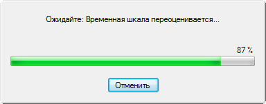 Будьте осторожны: если выбрать один шаблон и нажать ОК, то начнется операция по "переоценке шкалы", которая длится несколько минут. Чем больше видеоматериала находится на таймлинии, тем дольше ожидание, при этом любая работа в программе блокируется.