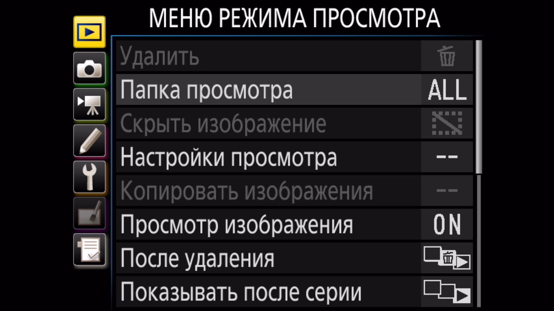 Требуется отметить наличие огромного количества настроек, затрагивающих буквально каждый аспект съемки. Приятно, что служебное меню всегда «помнит» тот пункт, к которому оператор обращался последний раз, и открывается именно на этом последнем пункте.
