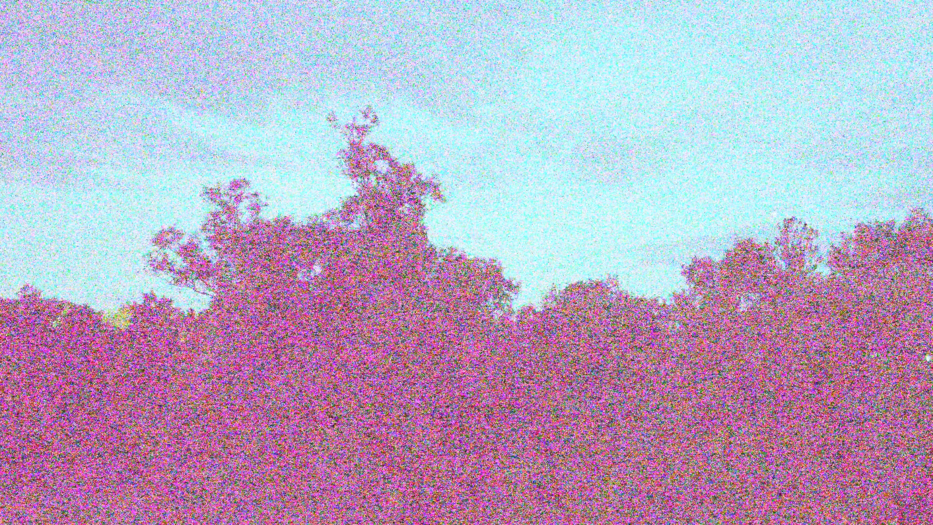 Заметим: съемка проводилась ночью, когда человеческий глаз с трудом различает эту разницу между небосводом и кронами деревьев. А камера — видит. Ну а шум... Что ж, при таком усилении он неизбежен.