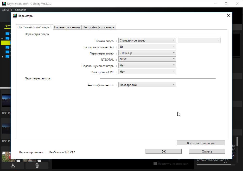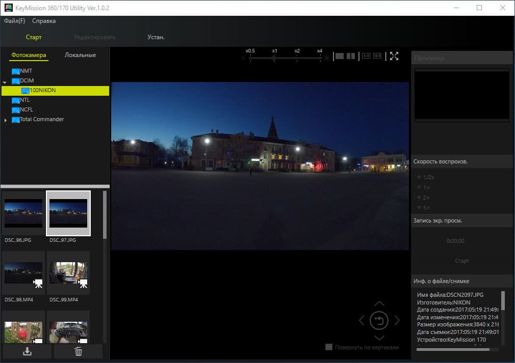 Помимо мобильного приложения, существует также программа для ПК, она называется KeyMission Utility. С ее помощью при подключенной к компьютеру по USB камере появляется возможность просмотреть снятый ранее материал, а также изменить настройки записи и режима.