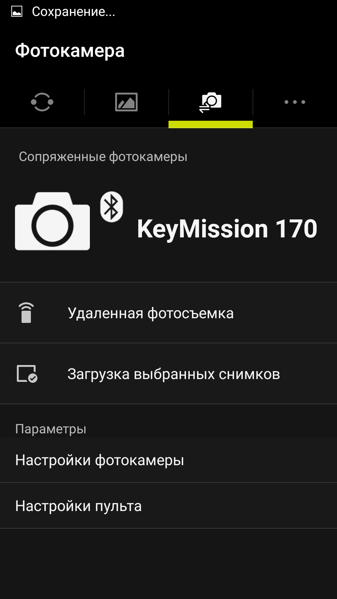Беспроводное соединение мобильных устройств с камерой осуществляется с помощью приложения SnapBridge 360/170. Эта программа отличается от стандартного ПО для фотокамер Nikon, поскольку написана специально для экшн-камер моделей KeyMission 360 и рассматриваемой KeyMission 170 соответственно.