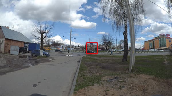 Следующий на очереди вопрос — роллинг-шаттер (подробнее см. в материале Роллинг-шаттер в видеосъемке — описание дефекта, примеры, пояснения). Наклон вертикалей в случае с экшн-камерой не измеришь — слишком велик угол обзора у этих аппаратов. Однако имеется неплохой способ все-таки разглядеть роллинг-шаттер, для этого нужно прокатить камеру на игрушечном автомобильчике. Благо ее размеры и вес позволяют это сделать.