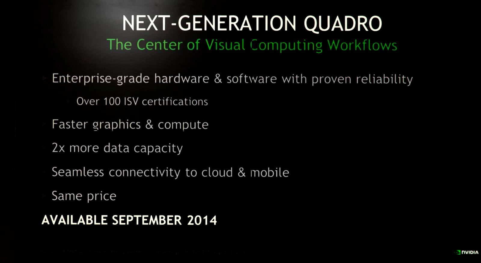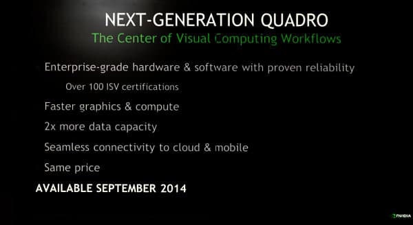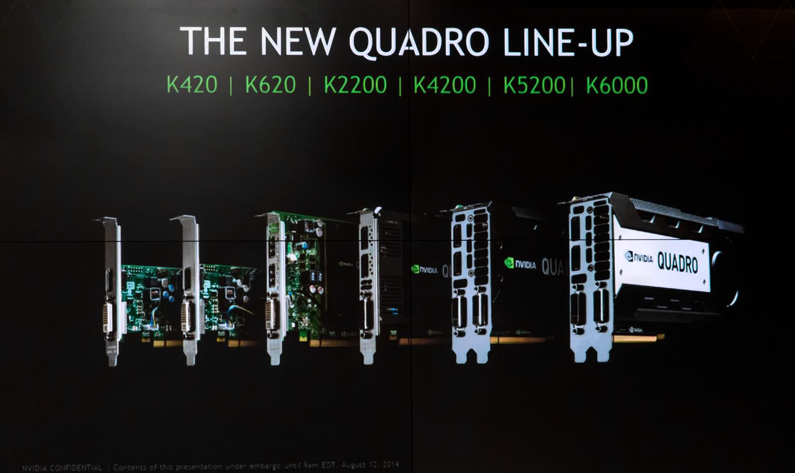 12 августа 2014 года было официально представлено новое поколение профессиональных карт Nvidia Quadro K5200, K4200, K2200 для десктопов и рабочих станций. Анонс приурочен к SIGGraph 2014. Карты ожидаются в продаже осенью по тем же ценам, что и предшествующие модели K5000, K4000, K2000. Старшая карта, K6000, остается флагманом линейки.