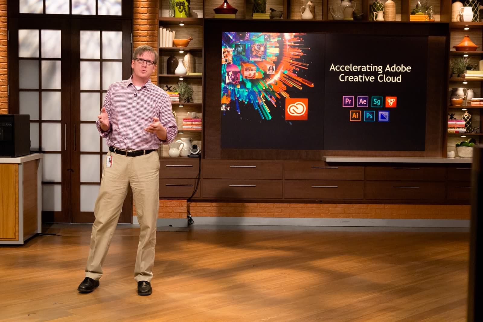 Было показано два демо: одно с Premiire Pro и одно с Illustrator. Видео о плавном скраббинге 4K-видео с кинокамер RED можно посмотреть в ролике, выложенном на YouTube.