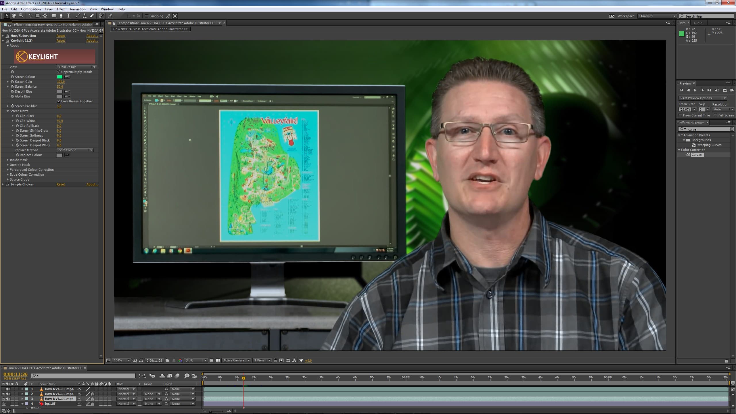 Давайте, например, используем Adobe After Effects и плагин Keylight 1.2. Он входит в комплект любой версии After Effects.