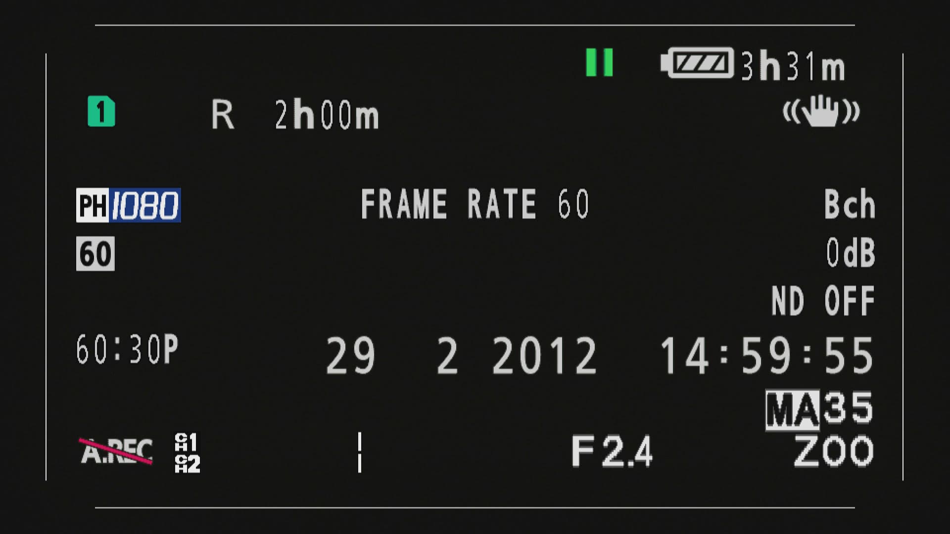 Как известно, производители видеотехники с превеликой неохотой оснащают свои видеокамеры функцией съёмки прогрессивного видео с частотой 50 или 60 кадров в секунду. И, как ни странно, в первую очередь этот плавный прогрессив появился вовсе не в дорогущих аппаратах профессионального класса, а в обыкновенных любительских камерах — тех, которые иногда презрительно обзывают мыльницами. И лишь спустя год-два, а то и три, режим 50-60p медленно начинает внедряться в новые профкамеры. Наша камера — одна из тех, что наконец-то оснащены режимом 50-60p, но и тут не всё гладко. Включение данного режима напоминает своеобразный хак, с соответствующими деструктивными последствиями в виде отсутствия в записи звука. Реализуется такое включение следующим образом: во-первых, в служебном меню требуется выбрать установку записи 1080 30p. Второй шаг — активация переменной скорости записи. Наконец, перед съёмкой следует настроить скорость записи, это можно сделать как здесь же, в служебном меню, так и нажимая на камере кнопку DIAL SEL до появления надписи FRAME RATE. После чего нужно крутануть находящееся рядом колёсико до получения нужного значения (доступны цифры от 2 до 60 кадров в секунду). В нашем случае оно должно составлять 60 кадров в секунду.