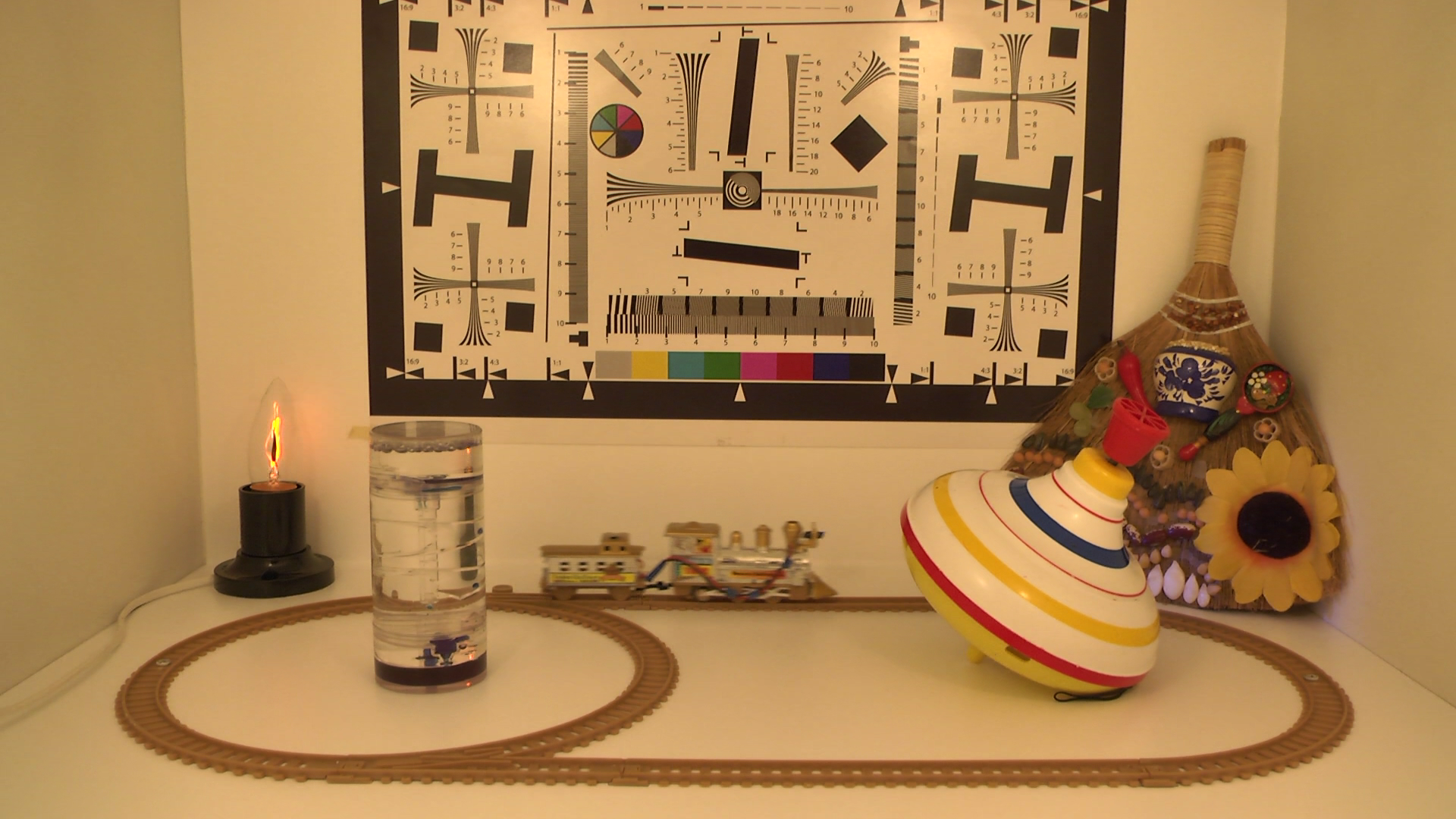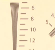 За результаты съёмки в условиях недостаточной освещённости можно порадоваться: почти полное отсутствие цветного шума и адекватный баланс белого. Действительная разрешающая способность камеры, как оказалось, не дотягивает до уровня бытовой камеры топ-класса и составляет немногим более 900 линий по горизонтали.