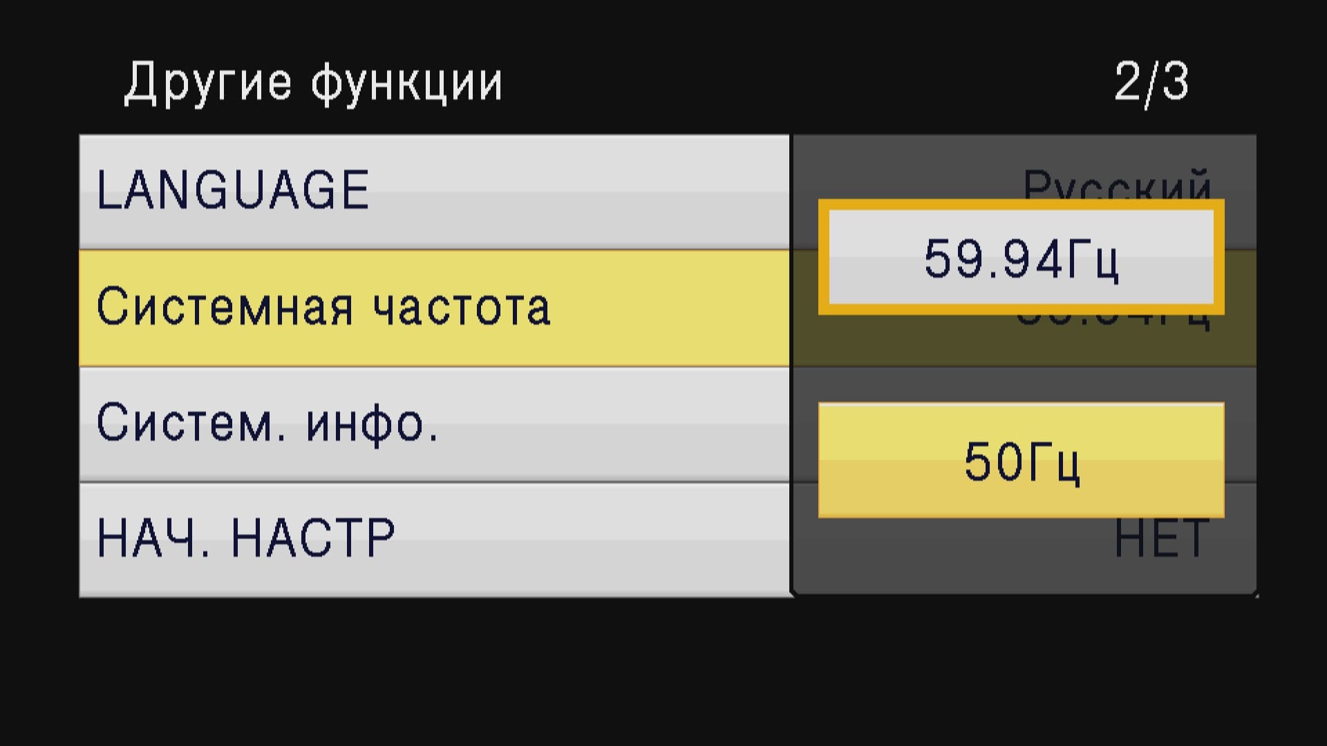 Читатель наверняка задался вопросом: почему здесь приводятся частоты NTSC? Где же PAL с его 25 и 50 кадрами в секунду, более соответствующими российским и европейским условиям? К сожалению, здесь мы вынуждены кивать на собственную плохую информированность. Попытка перевода системной частоты камеры в 50 Гц окончилась ничем: после перезагрузки аппарат сообщил, что дальнейшая работа невозможна.