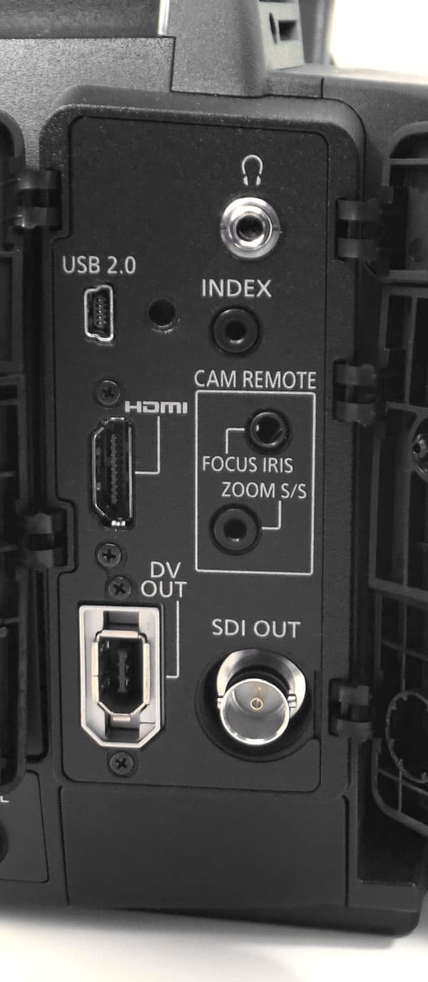 Поскольку обычному композитному видеовыходу места под теми заглушками не нашлось, его перенесли вместе с аудиовыходами на правую часть корпуса камеры, прикрыв такой же заглушкой.