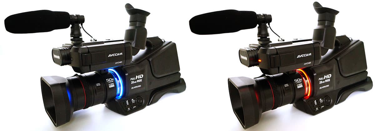 Забавный момент: в корпусе аппарата имеется тонкое прозрачное кольцо, обрамляющее металлическую насадку, которая соединяет камеру с ее оптической частью. На него не обратишь внимания, пока не включишь камеру. Синий свет означает режим простоя, а красный... Впрочем, вы уже догадались.