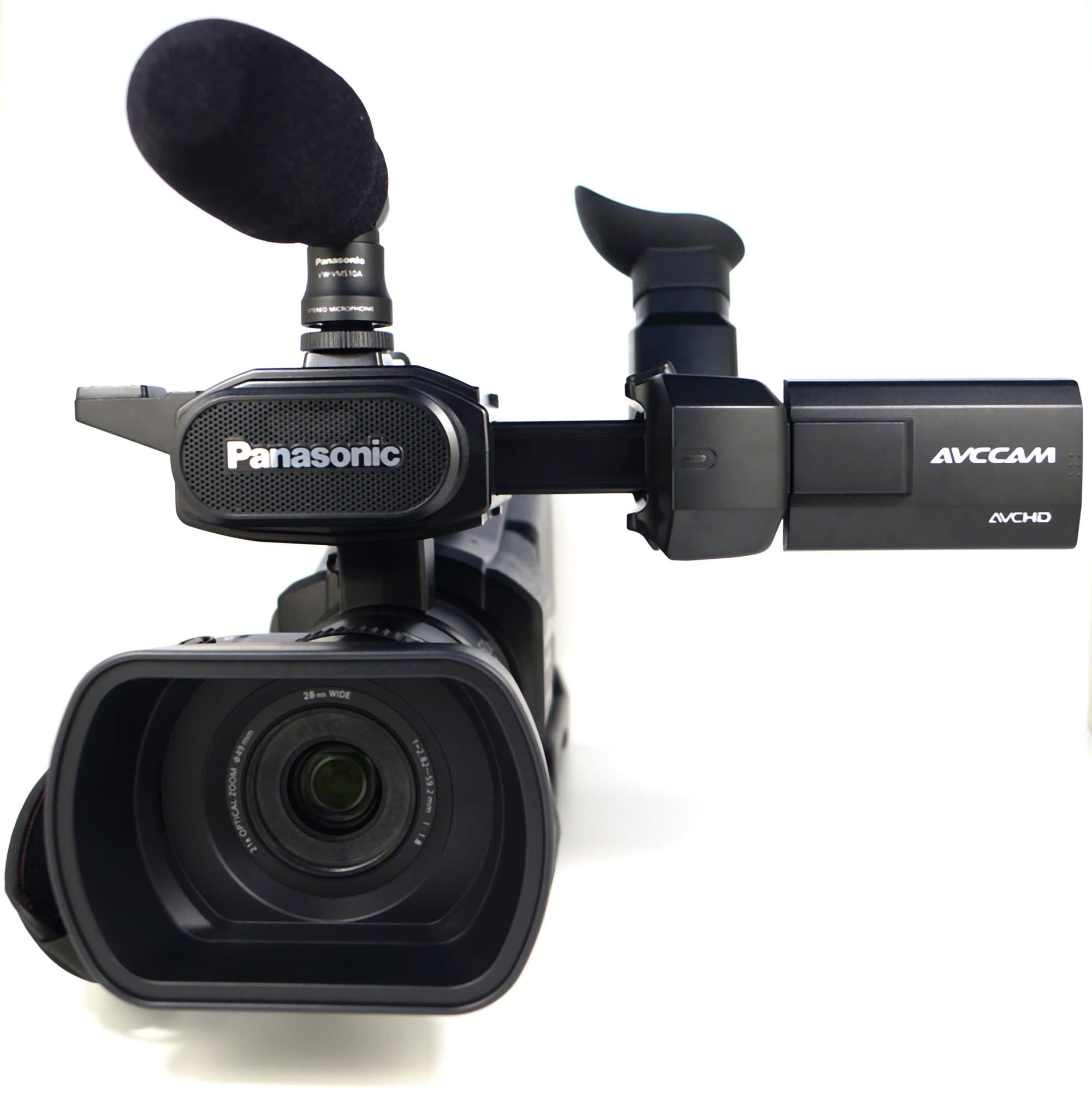 Стекло объектива защищено глубокой блендой и съемной пластиковой крышкой. Встроенные стереомикрофоны выдаются далеко вперед, и «смотрят» в том же направлении. Внешний микрофон можно подсоединить к одной из двух площадок, находящихся в верхней части камеры и расположенных ближе к объективу: в центре или сбоку.