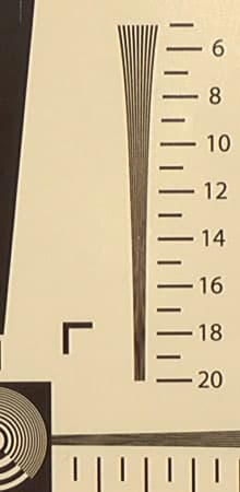 Главный наш помощник — тестовая таблица. Только с её помощью можно получить более-менее правдивое представление о реальной разрешающей способности того или иного аппарата. При съёмке таблицы следует грамотно расположить лист, на котором отпечатана таблица, и правильно навести на него камеру. Съёмка такой таблицы на полном зуме довольно затруднительна, ибо для этого требуется свободное помещение с большой площадью. Хотя, при желании, съёмку можно произвести и на открытом воздухе, если позволяет освещение. Что мы и сделали.