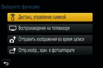 | Выбор режима беспроводного соединения | Старт встроенной в фотоаппарат точки доступа |