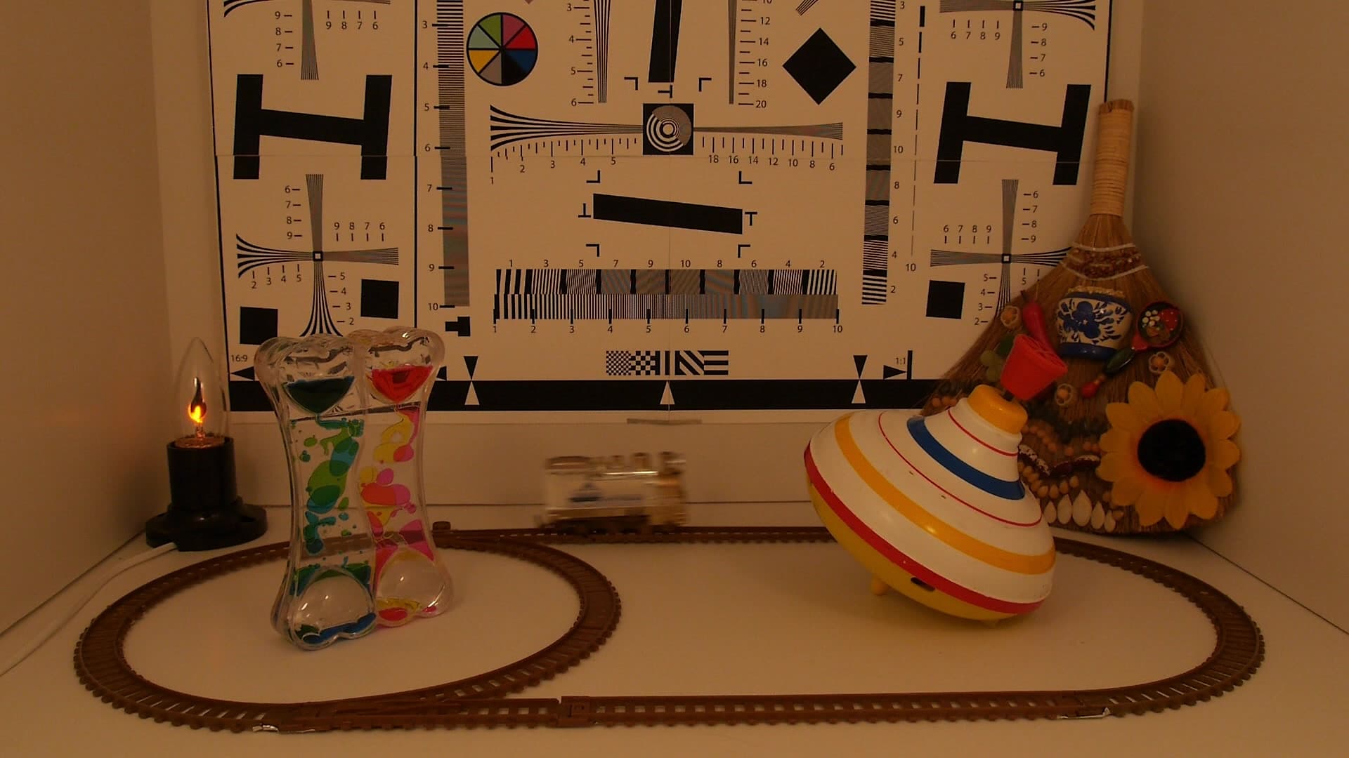 В заключение этой главы мы попытаемся ответить на следующий, заключительный вопрос, касающийся выбора режима записи. А именно: существует ли разница в светочувствительности камеры при съемке в разных режимах? Ранее мы убедились, что информация с матрицы в разных режимах записи снимается разными же способами; отсюда можно сделать предположение, что интерполяционный способ позволит получить меньшее количество шума, чем режим считывания с пропуском строк. Чтобы подтвердить или опровергнуть данное предположение, проведем съемку при одинаковом освещении в двух режимах: MOV 1920×1080/50p IPB 50 Мбит/с и MOV 1920×1080/25p Intra 72 Мбит/с. Эти режимы отличаются не только способом снятия информации с матрицы, но и режимом кодирования — междукадровое сжатие в первом случае и покадровое во втором. Во время съемки параметры камеры намеренно не изменялись: ISO 1600, F5,6, выдержка 50 (иначе какой смысл в сравнении?). Единственный изменявшийся параметр — это фокусное расстояние, зум. Ведь сравниваемые режимы серьезно отличаются величиной угла обзора.
