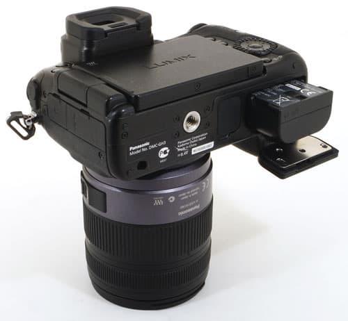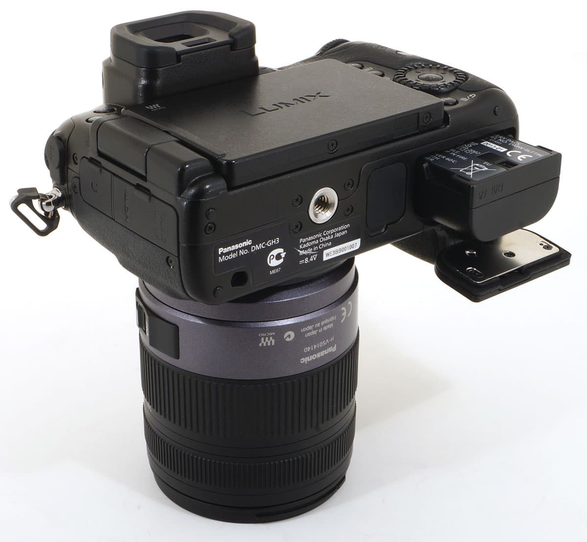 Также в нижней части корпуса находится утопленная внутрь контактная площадка, прикрываемая съемной резиновой заглушкой. Эти контакты требуются для совместной работы с одним любопытным аксессуаром: батарейным блоком DMW-BGGH3.
