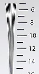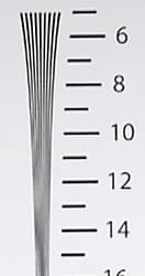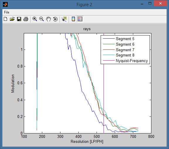 Кстати, повышенная резкость картинки является серьезным сдерживающим фактором для математических программ, которые применяются при определении разрешающей способности невизуальным методом. Во многом по вине «неподходящих» для программы стоп-кадров, результаты таких измерений зависят от того, как их трактовать, какую величину резкости считать идеальной, стандартной. Ну и, конечно, зависят от того, кто их, эти результаты, трактует. Считаем уместным ограничиться привычными и наглядными линиями в тестовой таблице (их число, как мы выяснили, не изменяется с увеличением или уменьшением резкости), а нижеследующие результаты невизуальных измерений просто оставим здесь. Вдруг когда-нибудь найдется способ правильно их трактовать, без навешивания на камеры ярлыков «Непригодна для измерений».