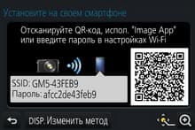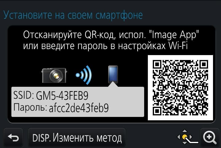 И все-таки упомянем о довольно удобном способе первоначального соединения камеры со смартфоном. Если в мобильном устройстве отсутствует технология NFC, то фотоаппарат самостоятельно проведет вас по всему процессу. Во-первых, попросит запустить на смартфоне или планшете соответствующее приложение, услужливо выведет на дисплей камеры всю необходимую информацию, включая QR-код, в котором «зашиты» нужные смартфону сведения. Всё, что останется пользователю — это «показать» смартфону данный код, и в течение нескольких секунд соединение будет установлено.