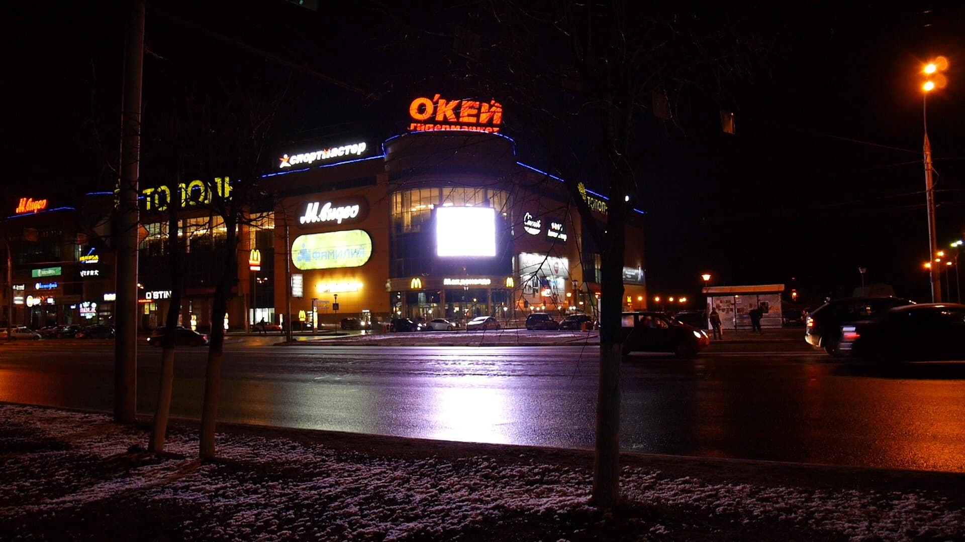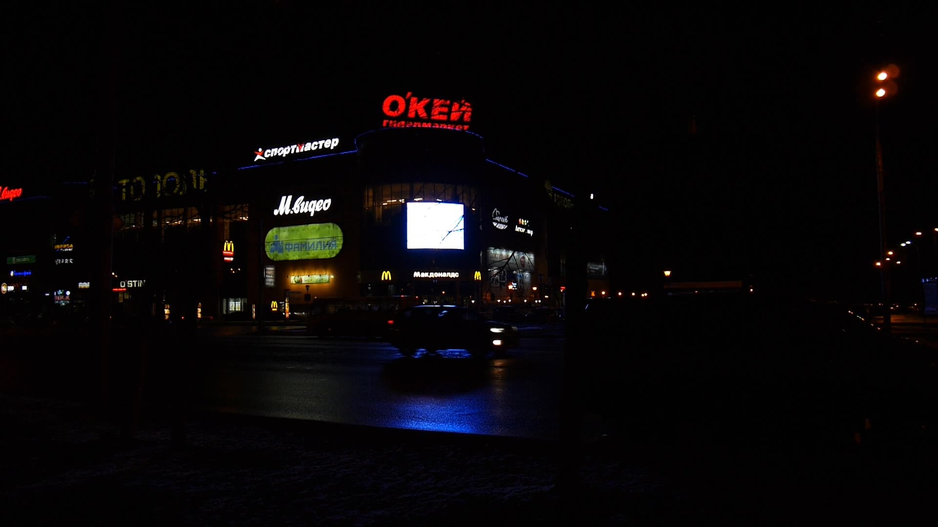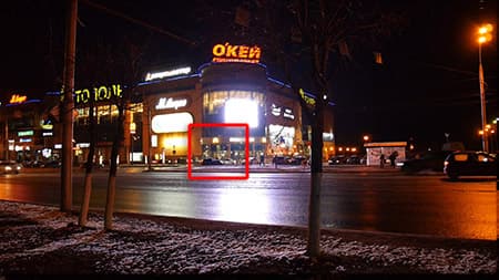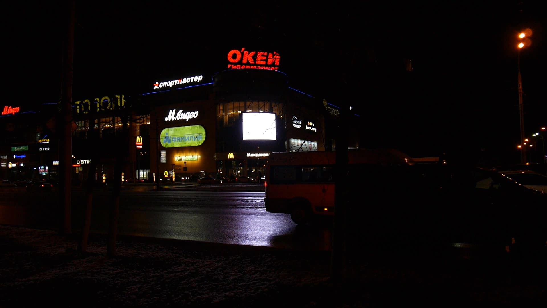 Итак, следующая съемка проведена в темное время суток на оживленной улице. Настройки фотоаппарата следующие: диафрагма полностью открыта (F3,5), выдержка установлена на значении 1/50 с, баланс белого автоматический, а значения ISO в каждом ролике увеличиваются. Оригинальные видеофайлы вряд ли имеет смысл прилагать к данной статье: слишком их много, и слишком редко они бывают востребованы читателем. Понимаем, что изучение качества видео по одним лишь стоп-кадрам — это несколько неправильно, поэтому всегда будем готовы предоставить оригинальные видеофайлы по первому же запросу.