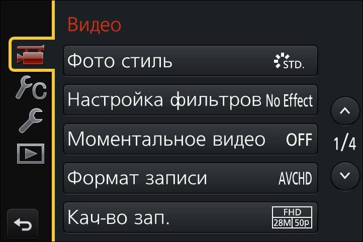 | MP4 1920×1080 50p 37 Мбит/с | MP4 1920×1080 25p 24 Мбит/с | MP4 1280×720 25p 17 Мбит/с | MP4 640×480 25p 12 Мбит/с |