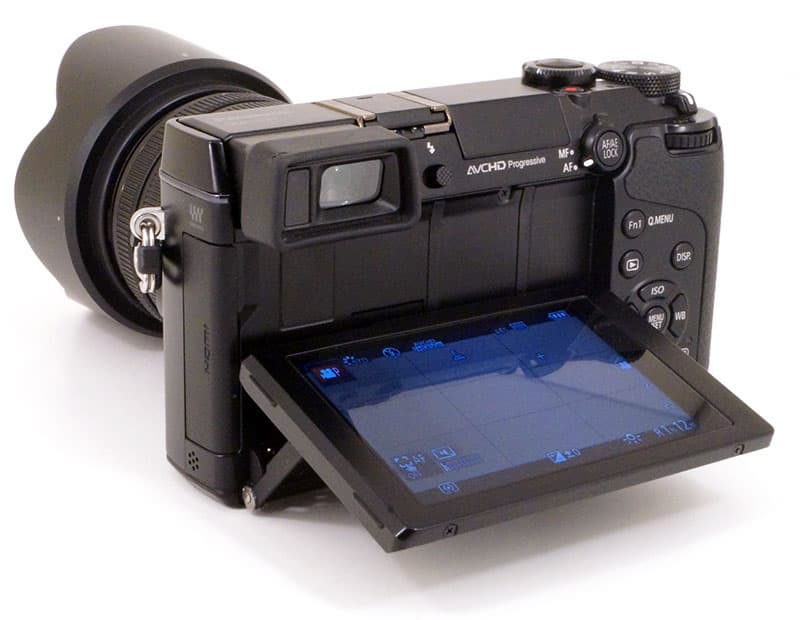 Форм-фактор аппарата нет смысла описывать: это обычный фотоаппарат, дизайн которого рассчитан на фотосъемку, то есть, на создание единичных снимков. Но никак не на «поливание» с рук, то есть, на видеосъемку. Чуть облегчает задачу видеосъемки наклонный ЖК-дисплей.