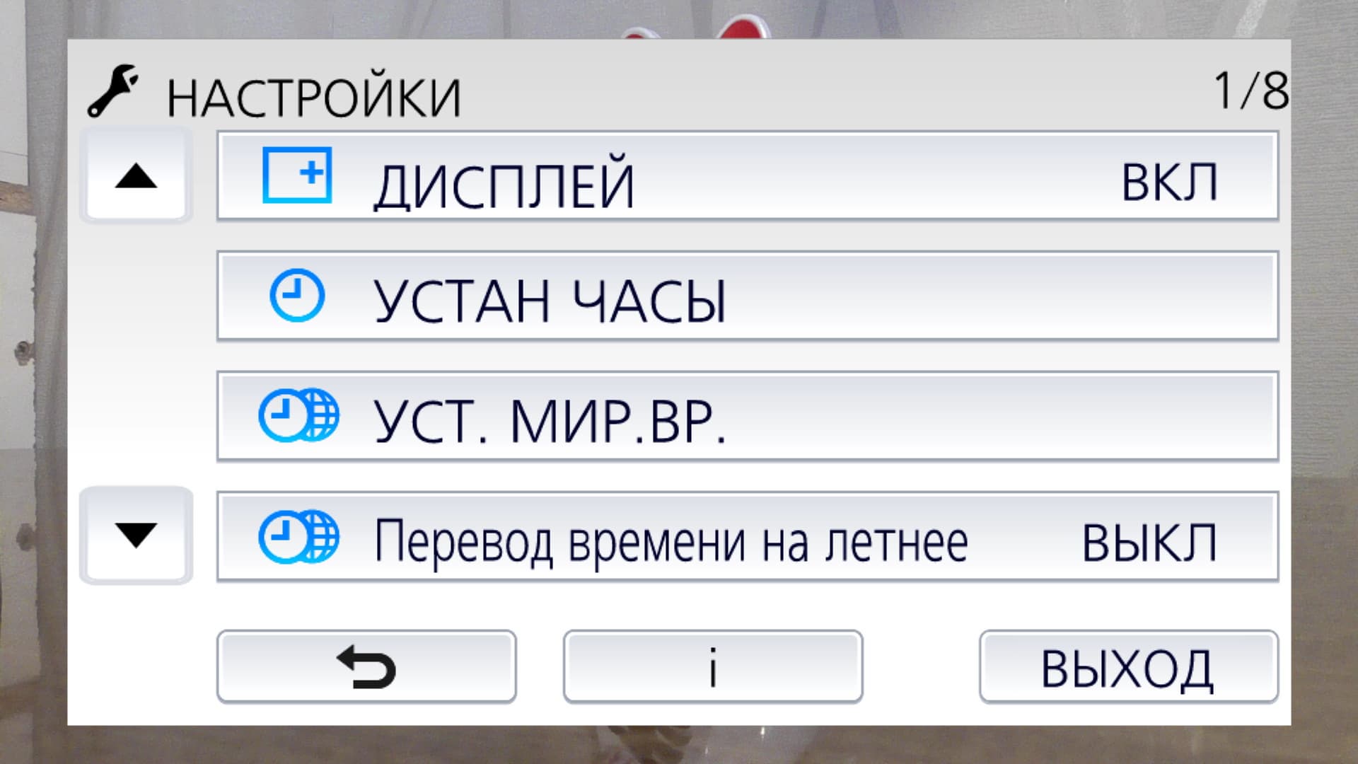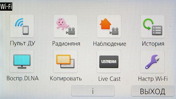 При активации Wi-Fi видеосигнал перестает подаваться на видеовыходы. Таким образом, для того чтобы показать список возможных опций, нам пришлось сфотографировать дисплей: