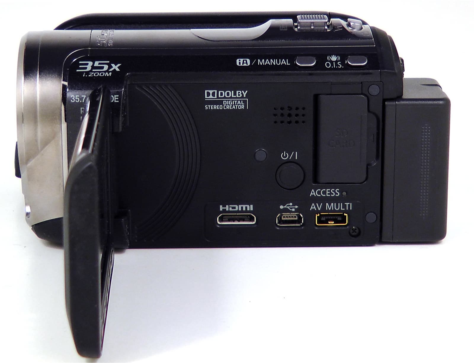 Под ЖК-экраном на внутренней части корпуса имеются динамик, кнопка принудительного включения/отключения аппарата, выход HDMI, порт USB и комбинированный аудио-видео композитный и компонентный выход. Под откидывающейся крышкой находится слот для карты памяти.