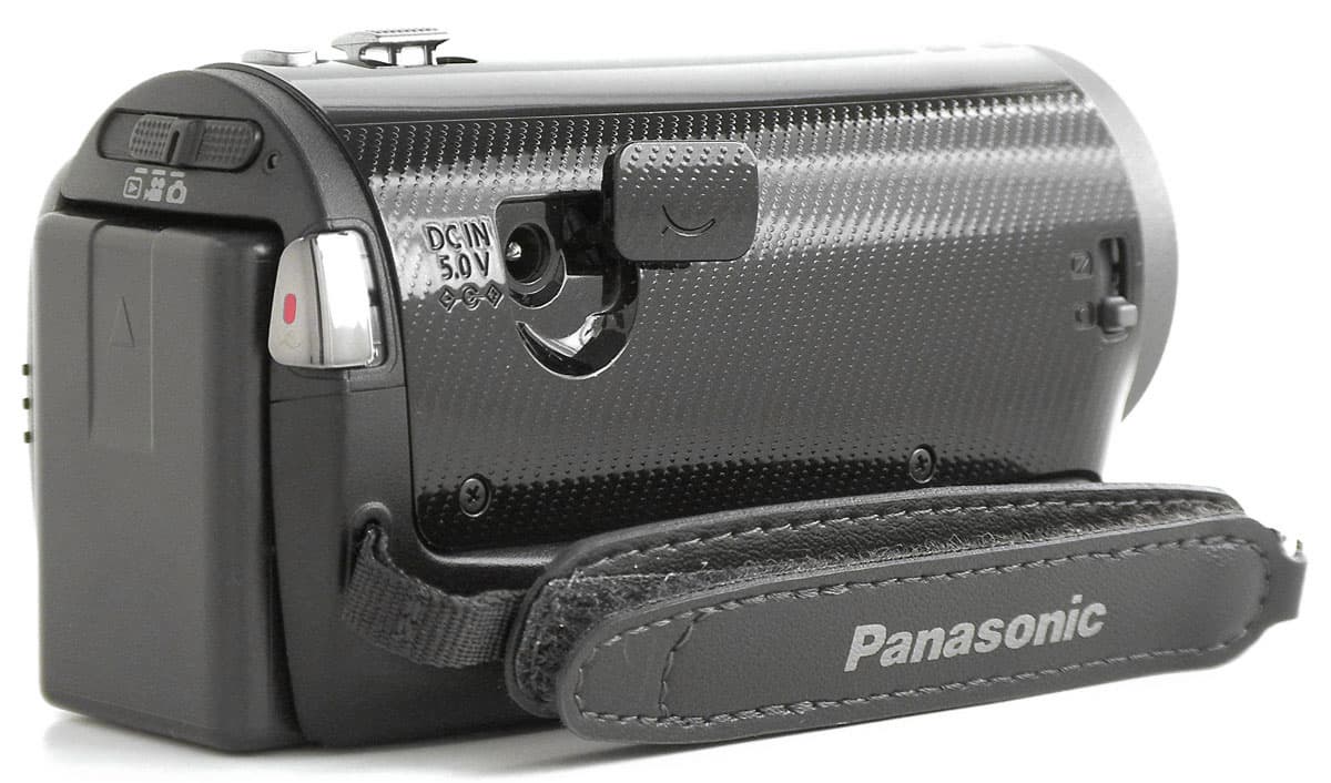 Материал корпуса видеокамеры ничем не отличается от 90-й модели. Даже текстурированная боковина, напоминающая стекловолокно, в точности та же самая. Как и вход для блока питания, который расположен ближе к торцу камеры.