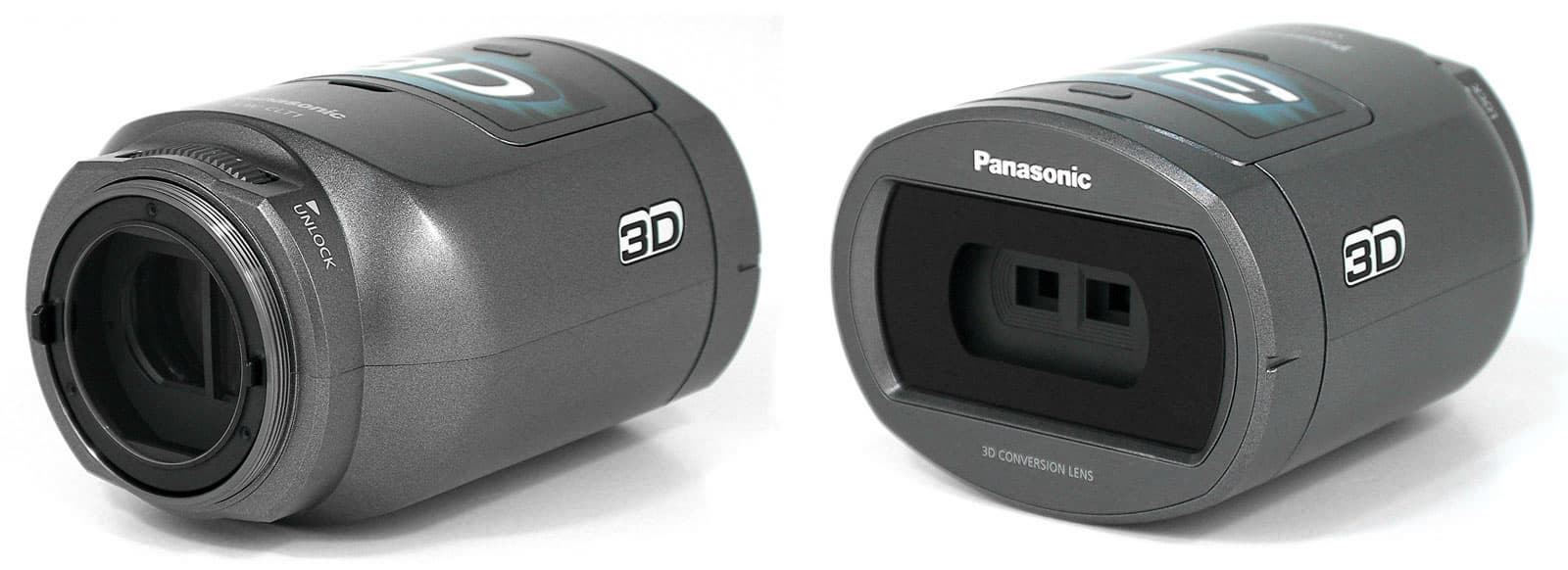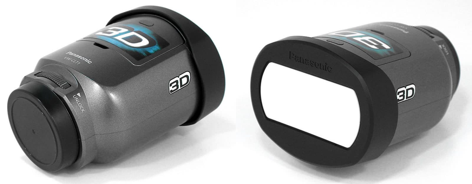 Таким образом, на приведённых фотографиях мы наблюдаем в точности ту же самую HDC-xx700, только с двумя дополнительными пазами рядом с объективом. Но лишь до тех пор, пока не возьмёмся за 3D-насадку.