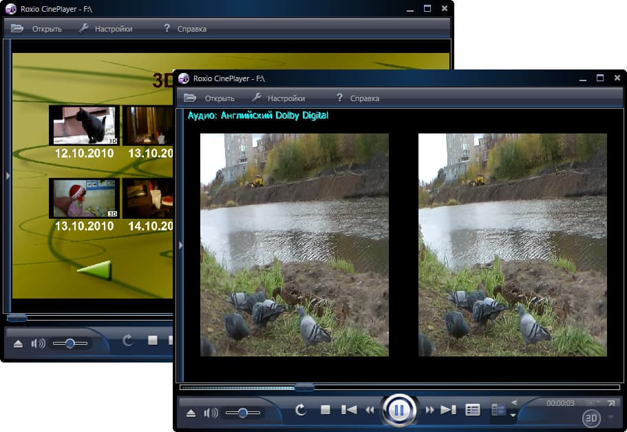 В первом случае все приведённые в статье примеры вы сможете просмотреть непосредственно в браузере. А вот для того, чтобы оценить ролики при помощи технологии 3D Vision, вам придётся их скачать и запустить в отдельном программном плеере с жёсткого диска. Увы, браузерные плееры пока ещё не научились проигрывать 3D, синхронизируя показ кадров с внешним оборудованием.