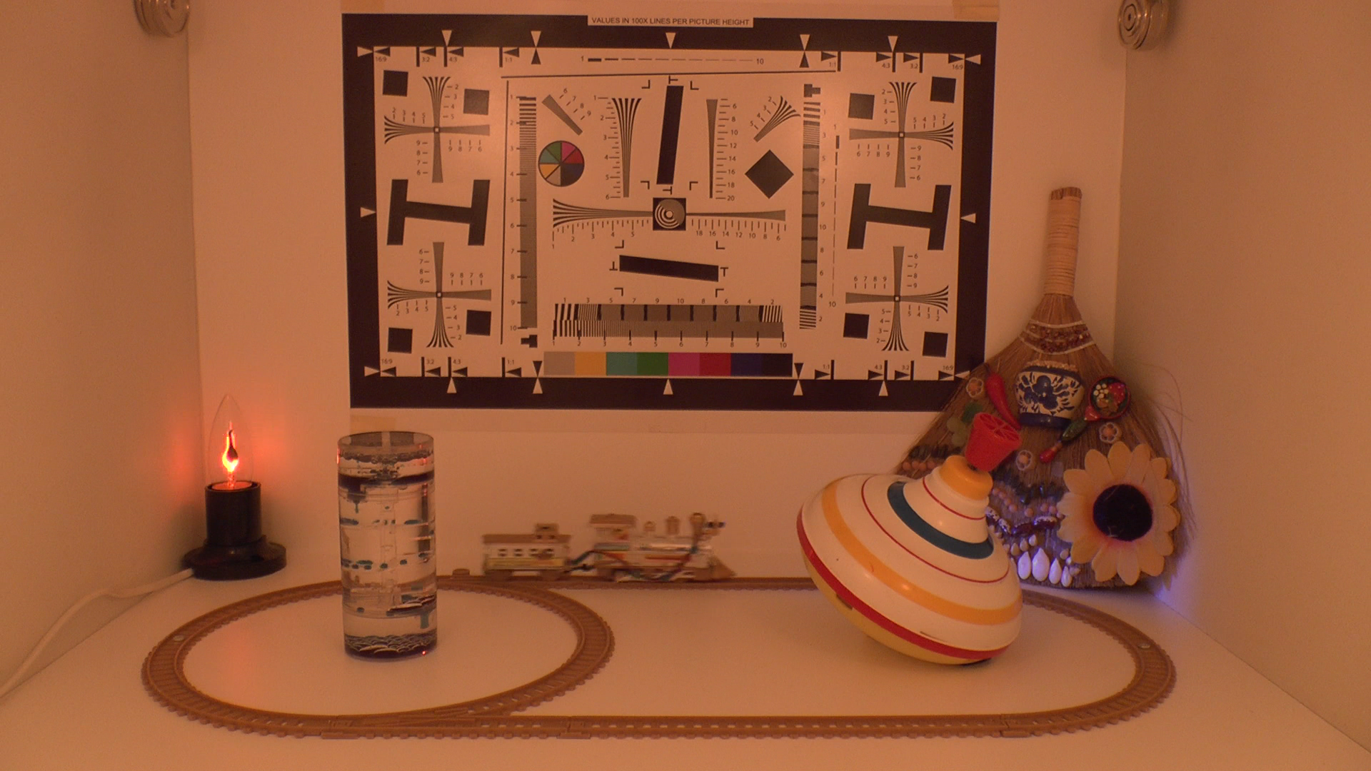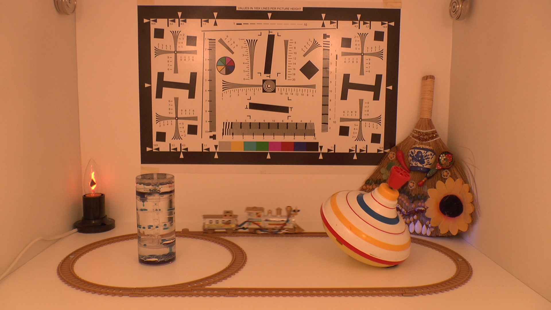 Во время съёмки в тестовом боксе пригодилось умение видеокамеры фокусироваться в 3D-режиме на предметах, находящихся менее чем в полуметре от объективов. Красноватая картинка при слабом освещении — это последствия работы автоматического баланса белого, ведь лампы накаливания и в самом деле «краснят». Действительное разрешение видеокамеры составляет не менее тысячи линий, что очень неплохо.