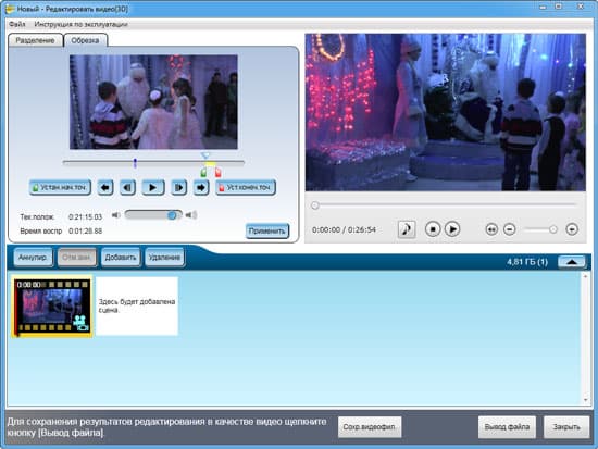 К сожалению, программа так и не научилась отображать видео в 3D-режиме. Даже при наличии нужного оборудования (монитора с поддержкой 3D), видео здесь отображается исключительно в плоском 2D-режиме. Как во время просмотра снятого материала, так и при его редактировании (правда, назвать несложную обрезку монтажом язык не поворачивается).