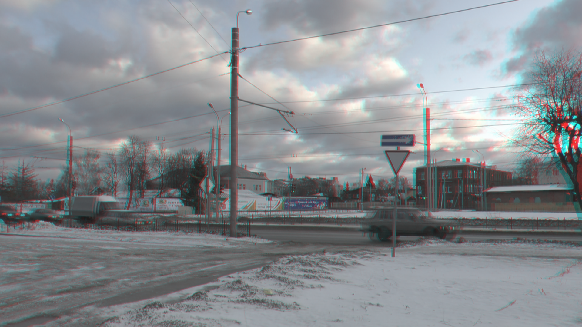 Измерить детализацию в 3D-режиме — задачка нетривиальная. С 2D всё гораздо проще, тут любой заметит, как она, детализация, падает от режима 50p к самому экономичному интерлейсному режиму с максимальным битрейтом 18 Мбит/сек. Кстати говоря, читателю может показаться, что в 3D-режимах камере требуется больше света, нежели для съёмки в 2D (первые два кадра выглядят темнее остальных, снятых в 2D режиме). Но дело в другом: штормовой ветер с такой скоростью гнал плотные облака, что уровень освещённости при съёмке менялся каждую минуту, если не чаще. На самом деле яркость получающегося видео одинакова в 2D- и 3D-режимах, в этом мы убедимся позже, при съёмке в искусственных условиях, где нет ветра, облаков и любопытных прохожих.