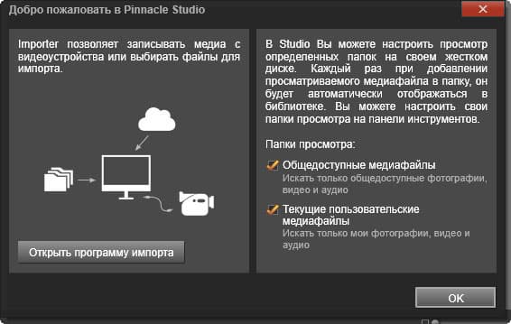 При старте программы имеется возможность выбрать способ импорта материала — данный шаг можно смело пропускать, если материал уже находится на жестком диске ПК.