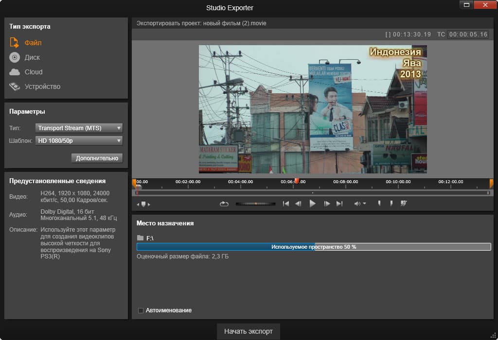 Окончательный «прожиг» диска проводится в отдельном модуле программы, который называется Studio Exporter — он всплывает поверх материнского окна и активен до тех пор, пока идет просчет.