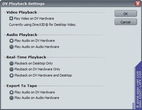 Если вам нужно вывести видео не в аналоговом, а в цифровом виде через IEEE 1394, находящийся на плате, то просто выберите соответствующие настройки в вашем видеоредакторе (на рисунке ниже представлены настройки Adobe Premiere Pro, устанавливающие вывод редактируемого видео на DV-устройство).