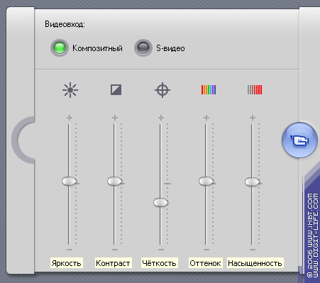 Видно, что PCI-устройство, в отличие от своего USB-родственника, не поддерживает обработку такого параметра, как резкость. Хорошо это или плохо судить владельцу платы. Все же, учитывая и без того невысокое качество аналогового сигнала, можно предположить, что потеря невелика зачем может понадобиться добавление еще большей "замыленности" или "зернистости"?
