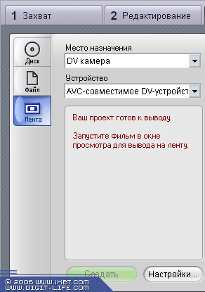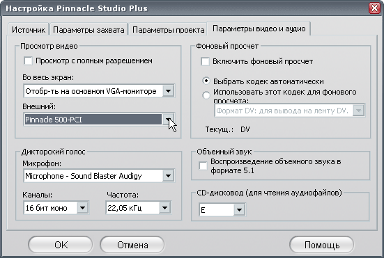 Конечно, указанные выше настройки касаются лишь захвата аналогового видео, и недоступны при захвате видео с цифровой камеры через порт IEEE 1394.