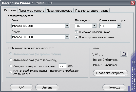 Если вы собираетесь захватывать видео с аналогового источника, например, видеомагнитофона, то следует знать некоторые особенности, способные значительно облегчить процесс захвата. Итак, откроем настройки программы Pinnacle Studio Plus 10.