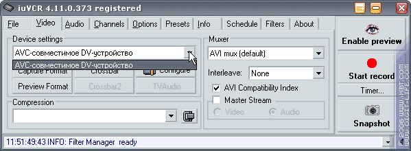 А что же известный дока по захвату аналогового видео, программа iuVCR? Запустим ее.