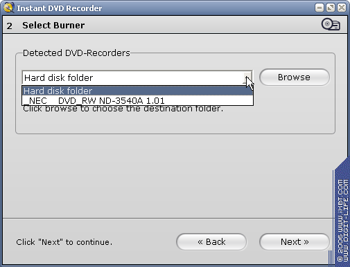Во втором шаге программа попросит выбрать устройство, куда будет записан полученный сигнал. Это может быть как директория на жестком диске, так и DVD-рекордер.
