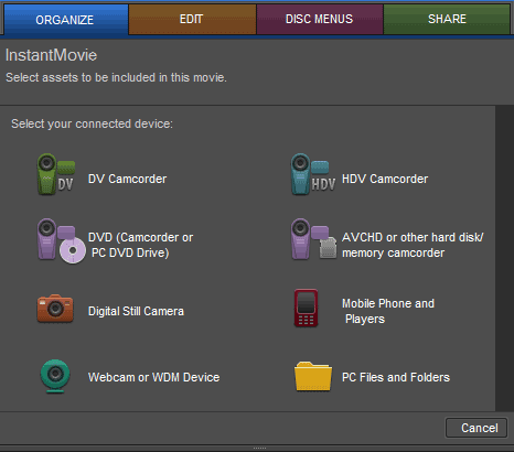 Начать работу следует, разумеется, с импорта в программу видео-аудио-фотоматериала. Это можно сделать несколькими способами, от захвата с веб-камеры и цифровой видеокамеры до импорта готовых файлов с любого носителя.