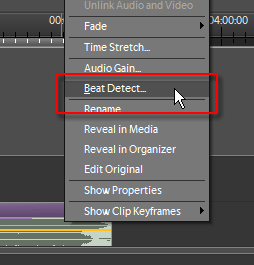Данный модуль предназначен для автоматического поиска пиков на звуковой дорожке фильма (или в музыкальном сопровождении). Этот инструмент значительно облегчает работу при создании, скажем, энергичного ролика, где по замыслу монтажера сцены должны меняться в такт музыке. Теперь вместо того, чтобы вручную отмечать каждый удар барабана, достаточно запустить модуль Beat Detect, щелкнув на нужной аудиодорожке правой кнопкой мыши и выбрав из контекстного меню команду Beat Detect.