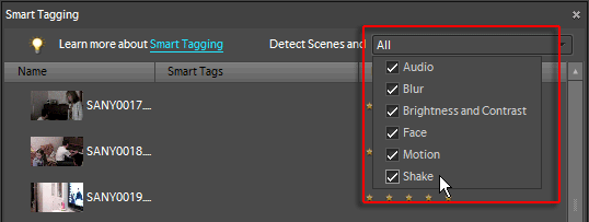 Работа модуля Smart Tagging заключается в автоматическом анализе видеофайлов. При этом программа проверяет, присутствует ли звук в роликах, правильно ли был выставлен фокус при съемке, определяет яркость и контраст картинки. Вдобавок ко всему модуль отыскивает лица, попавшие в кадр, а также анализирует движение и тряску.