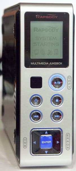 Комплектация весьма богатая, единственное, чего не хватает — это жесткого диска. В принципе, для кого-то удобно, когда диск уже установлен, но на наш взгляд, более логично предоставить свободу выбора винчестера пользователю. Можно и объем, и производителя выбрать по своему вкусу, к тому же, если медиафайлов уж очень много, то жесткие диски можно и менять. Технически процедура предельно проста даже для совершенно неопытного юзера. Относительно выбора накопителя для Rapsody можем посоветовать только не увлекаться самыми быстрыми винчестерами — выигрыш во времени копирования файлов будет ничтожный, а вот более заметный шум высокооборотистого жесткого диска будет проявляться постоянно.