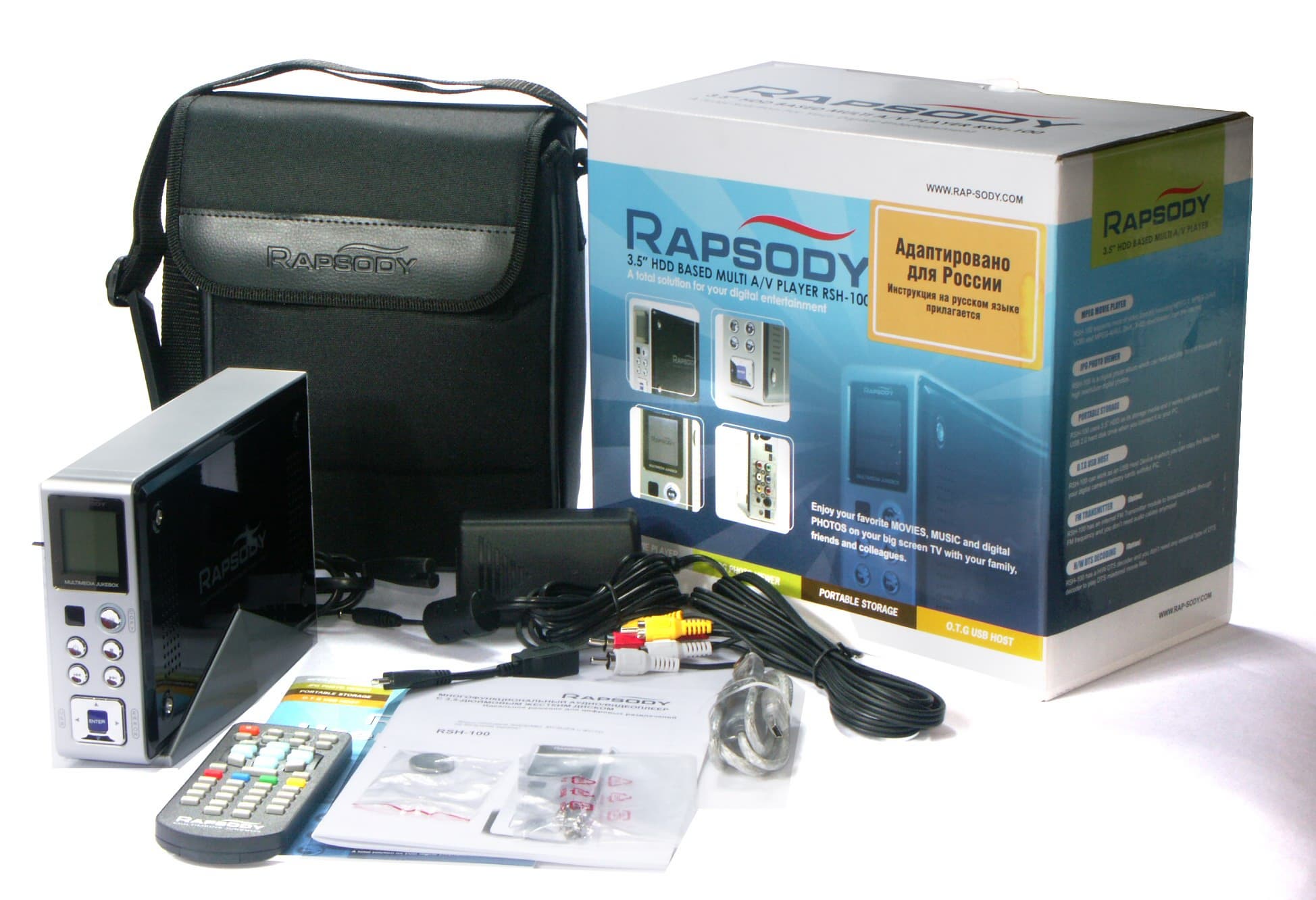 Плеер с жестким диском — понятие очень расплывчатое. Это может быть и портативный iPod, и стационарный тяжеловесный DVD-рекордер с винчестером внутри. У каждого варианта свои плюсы и минусы, поиски золотой середины продолжаются. Наиболее доступные устройства используют стандартные 3,5″ жесткие диски с интерфейсом IDE и позволяют просматривать видео и фотографии, слушать музыку без участия компьютера. При этом форматы записей поддерживаются самые что ни на есть компьютерные, во всем их разнообразии. Предлагаем вам обзор такого устройства — Rapsody RSH-100 фирмы Savit Micro.