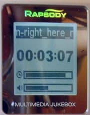 Во время воспроизведения на LCD-экран Rapsody выводится название файла, время, прошедшее от начала композиции, прогрессбар, а также уровень громкости.