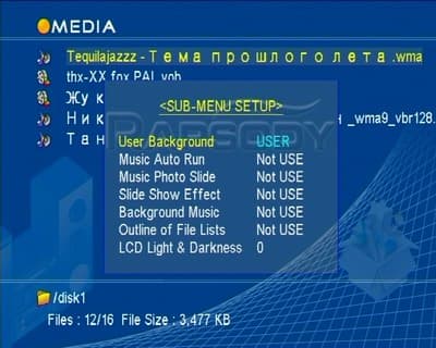В прошивке 1.2 появилась новая функция — при нажатии кнопки «9» на пульте вызывается субменю, где можно задать обои меню, фоновое музыкальное сопровождение при просмотре фотографий, папку автозапуска для слайд-шоу/музыки и другие опции.