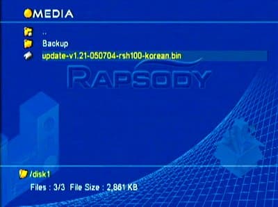 Процедура обновления прошивки примитивна: копируем на Rapsody бинарный файл со свежей версией firmware (для корректной поддержки кириллицы нужно использовать «rsh100-korean.bin») и запускаем его «воспроизведение».