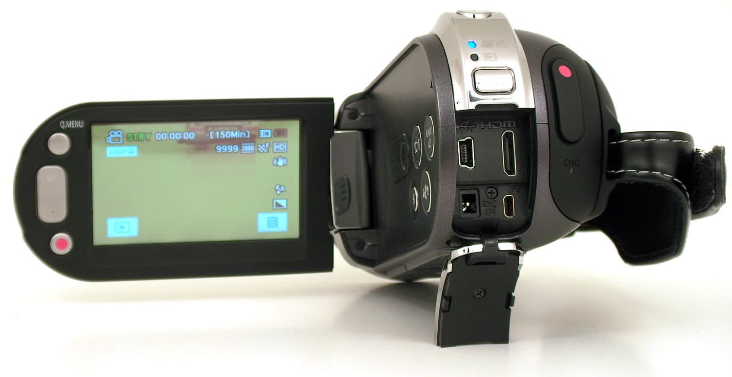 В задней части аппарата имеется откидывающаяся крышка, под которой расположены: USB-порт, HDMI-выход, вход для блока питания и комбинированный компонентный/композитный видеоаудиовыход. ЖК-экран видеокамеры оснащён дублирующими кнопками: Q.MENU, вызывающей сокращённый вариант меню с быстрым доступом к основным настройкам; качалка зума; кнопка старта записи.