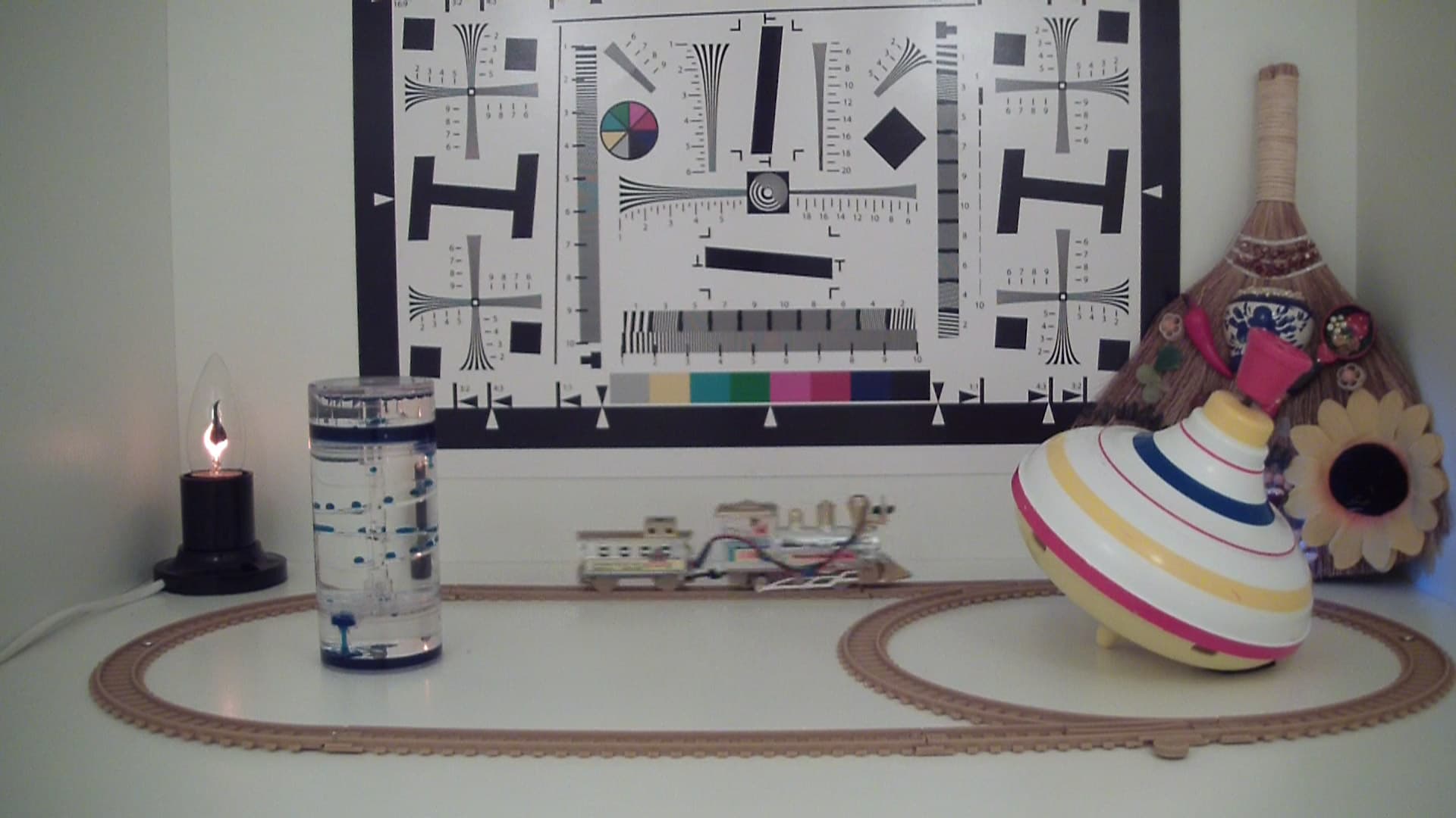 Удивительное дело. Либо мы так удачно подобрали количество люксов в тестировании, либо инженеры Samsung наградили камеру такими хитрыми настройками. В «ночной» режим камера переходит лишь при почти полном отсутствии света. В остальных случаях аппарат выжимает из своего усилителя всю его мощь, дабы как можно больше осветлить картинку. Посмотрите: между 700-люксовым и 5-люксовым примерами практически не видно разницы! Конечно, это не означает, что в комнате с двумя лампочками видео будет выглядеть таким же чётким и сочным, как на улице в солнечный день. Присмотритесь к паровозику, бегающему по кругу. Именно таким размытым получится любой контур любого объекта во время съёмки при слабом освещении, если камера не статична или в кадре имеется движение. Впрочем, в этом мы уже убедились на видеопримерах, приведённых ранее.
